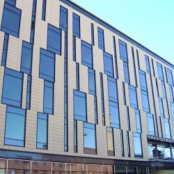 Tampereen Scandic-hotellin torinpuoleisessa julkisivussa on käytetty NBK:n eripituisia lankkuja luomaan jännittävä ja yllätyksellinen vaikutelma.